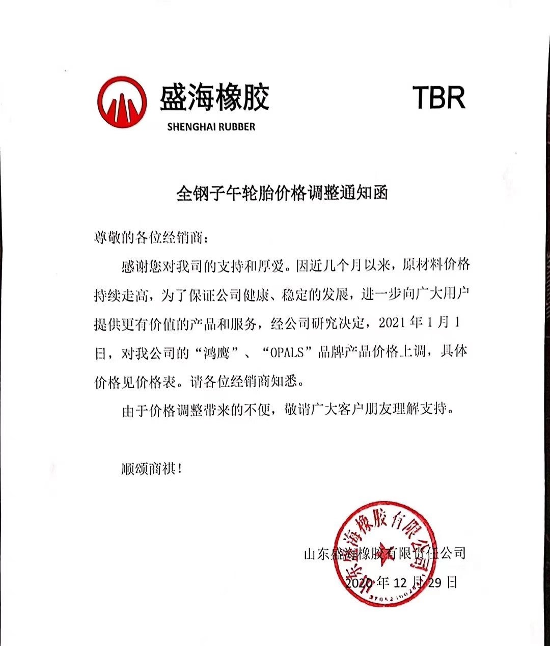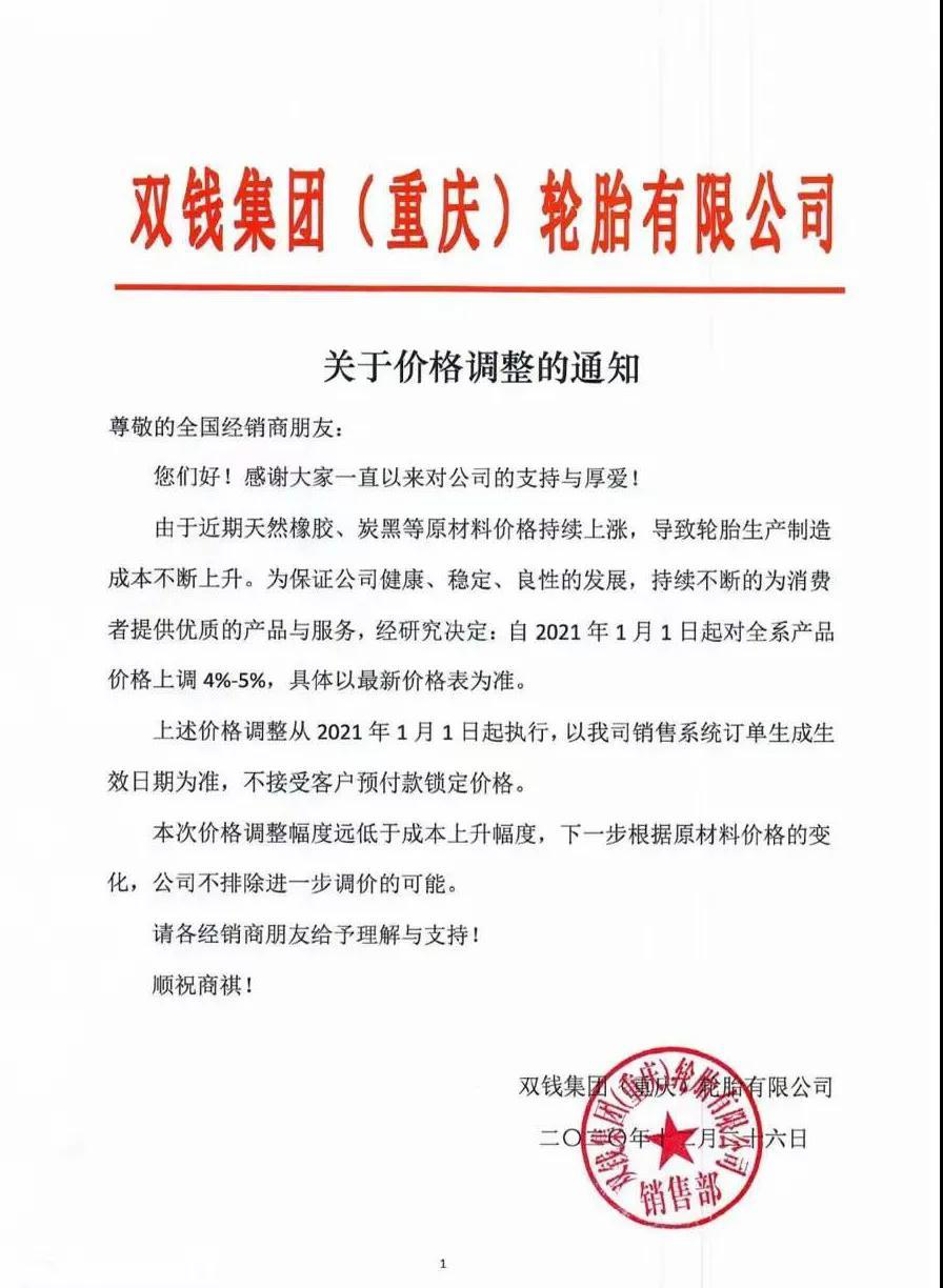 2020年以來,大部分橡膠廠家都漲了三到四次,漲價(jià)幅度在6-10個(gè)點(diǎn)不等!剛步入2021年,咱們看看漲價(jià)通知吧!